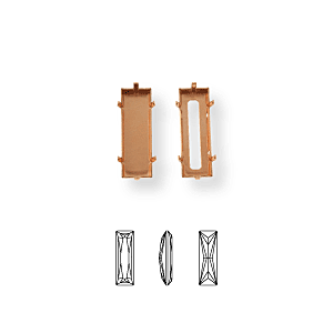 Aufnähkessel Princess Baguette 24x8mm, 6 Krallen, 4 Löcher zum Aufnähen (2 Löcher auf 2 Seiten), Boden offen, Tombak, Light Gold